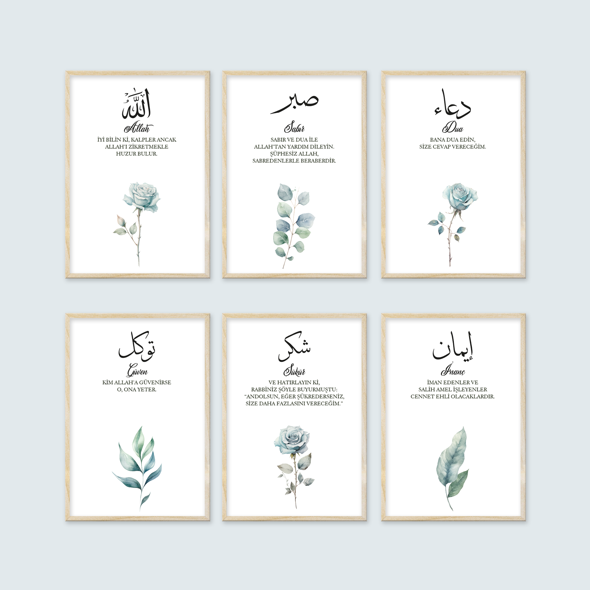 Allah - Sabır - Dua - Güven - Şükür - İnanç - 6'lı Tablo Seti