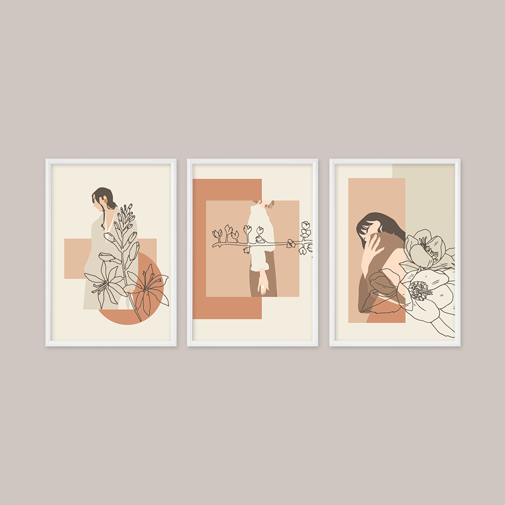 Bohem Kadın ve Çiçekler 3'lü Tablo Seti (TSET0188)