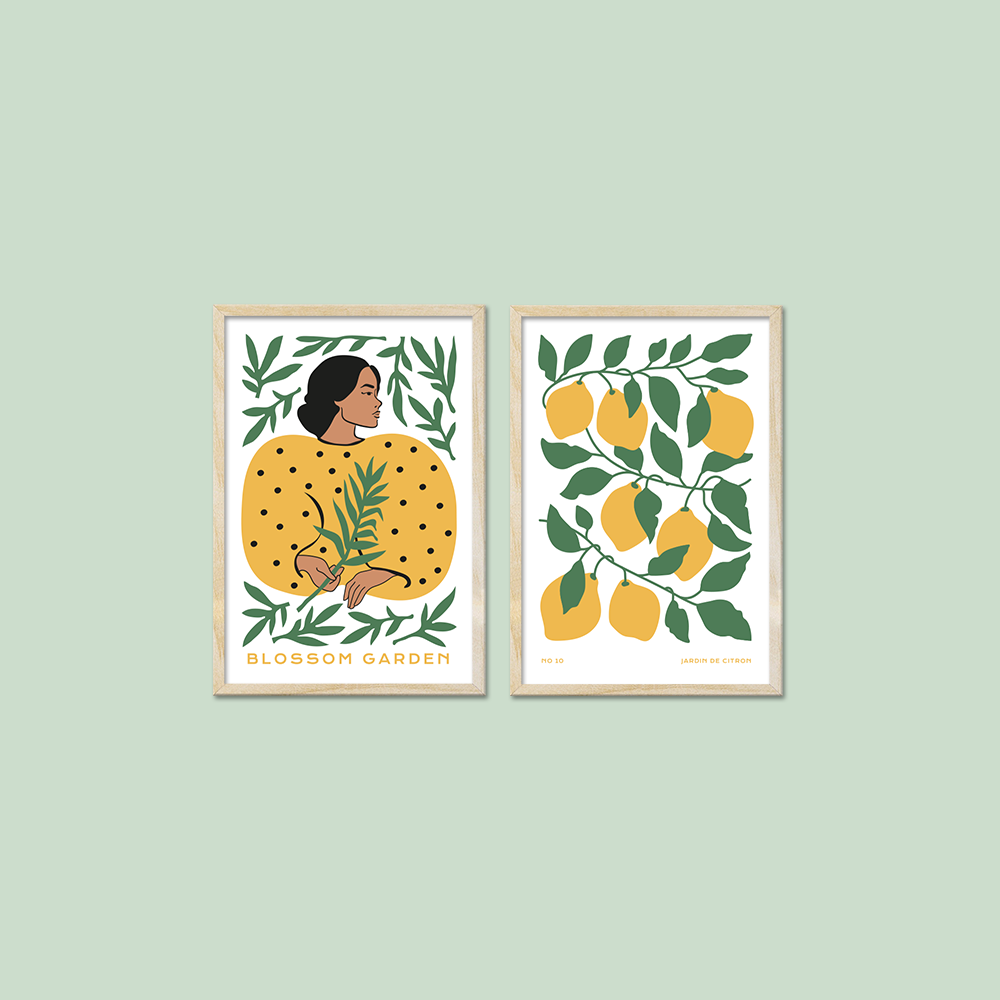 Bohem Kadın ve Limon Temalı 2'li Tablo Seti