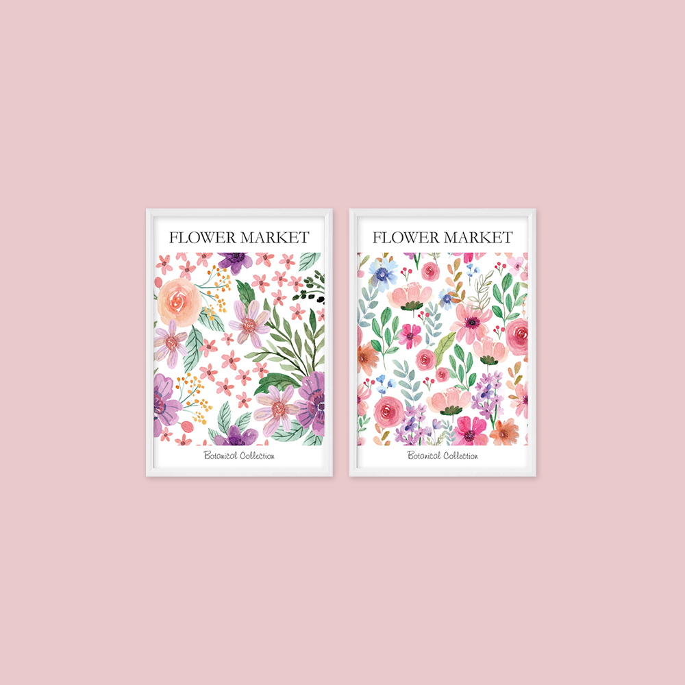 Flower Market - Renkli Çiçekler 2'li Tablo Seti