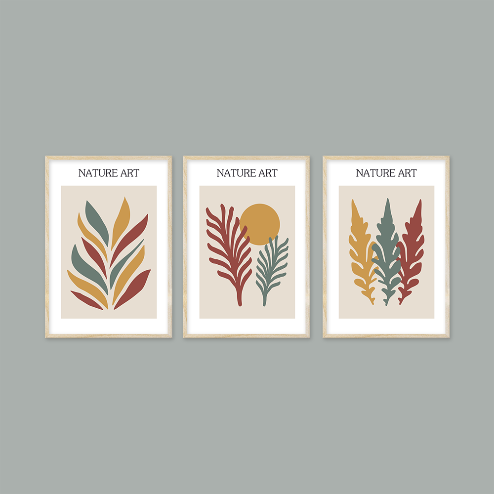 Nature Art - Yaprak Temalı 3'lü Tablo Seti (TSET0186)
